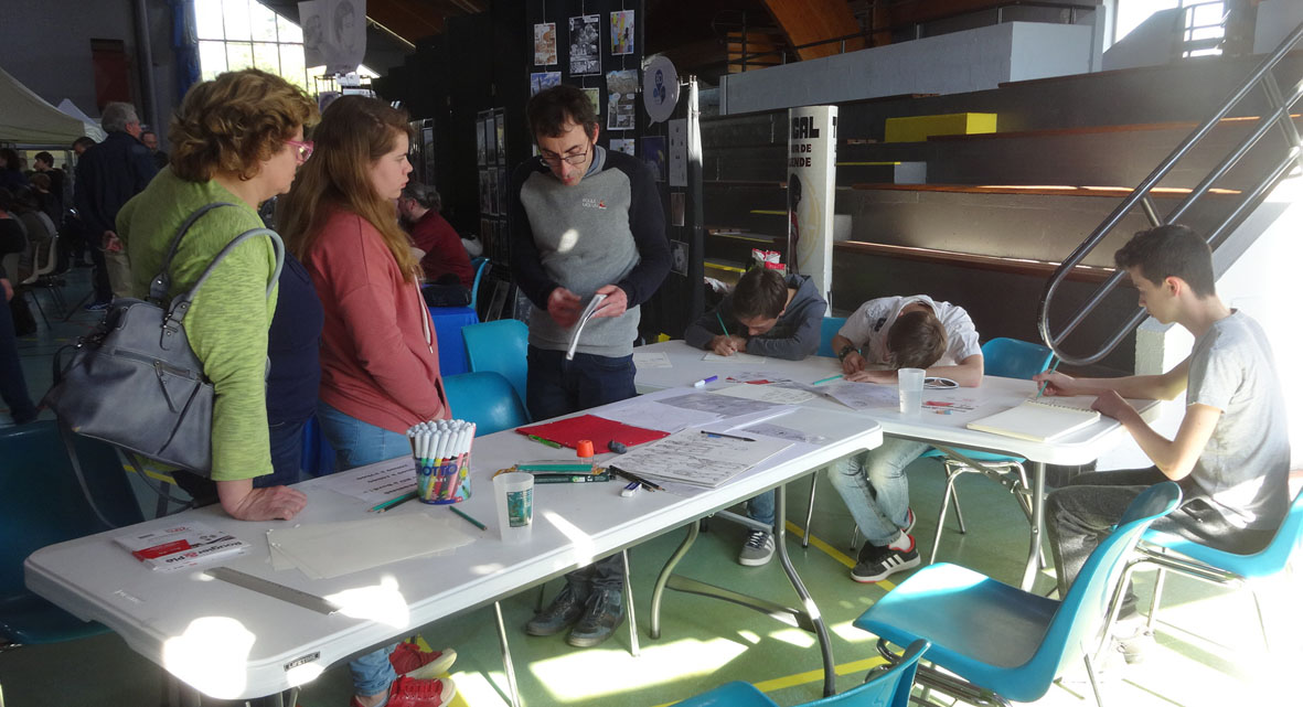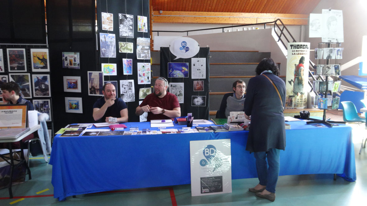 L’atelier BD à Bord était présent les samedi 30 et dimanche 31 mars pour présenter, notre fanzine durant du 4eme festival BD d’Ancenis. il y a eu une grande affluence. Nous y étions nombreux et avons fait de belles rencontres. nous avons présenté les 6 numéros de Bubble Gomme, des marques pages et des cartes postales personnalisables. nous avons aussi réalisé des portraits pour les visiteurs. Un bravo à Franck qui a réalisé un quadruple!
