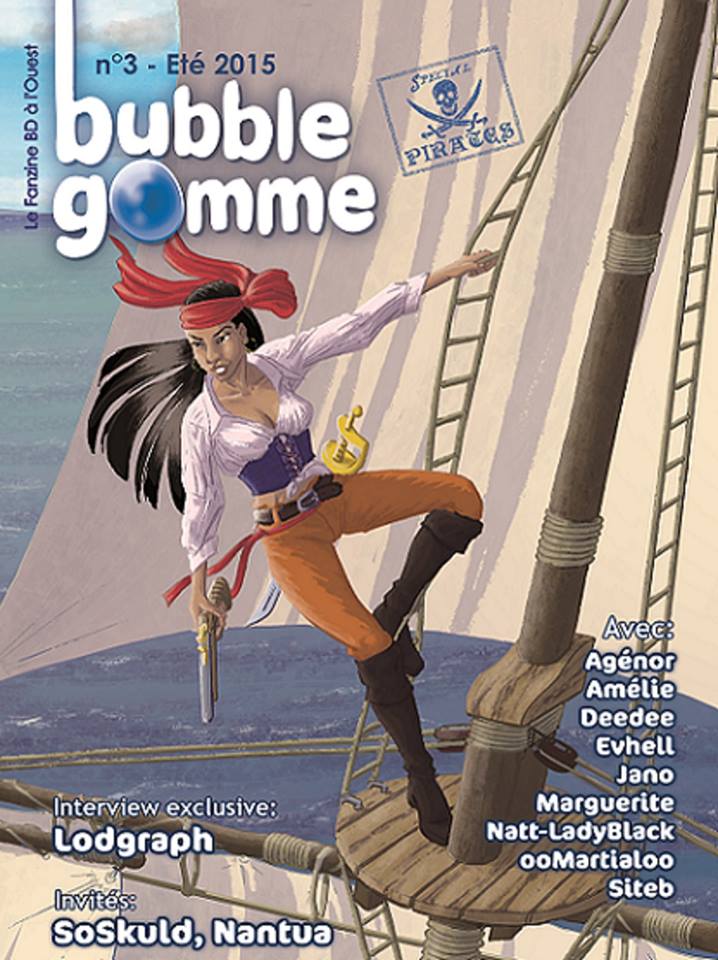 Bubble Gomme 31 Juil, 2017 par MR Date de parution : juillet 2015 Thème : » Pirates » Interview exclusive : LodGraph (Elodie Dumoulin) Auteurs participants : SoSkuld Nantua Agénor Le Ruyer Amélie Deedee Evhell Jano Marguerite Natt-Ladyblack Martial Siteb Extraits :